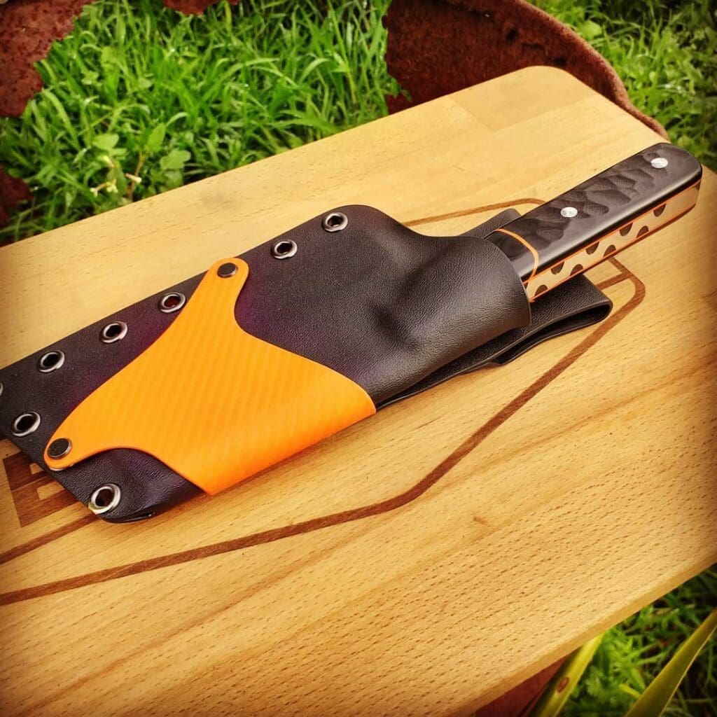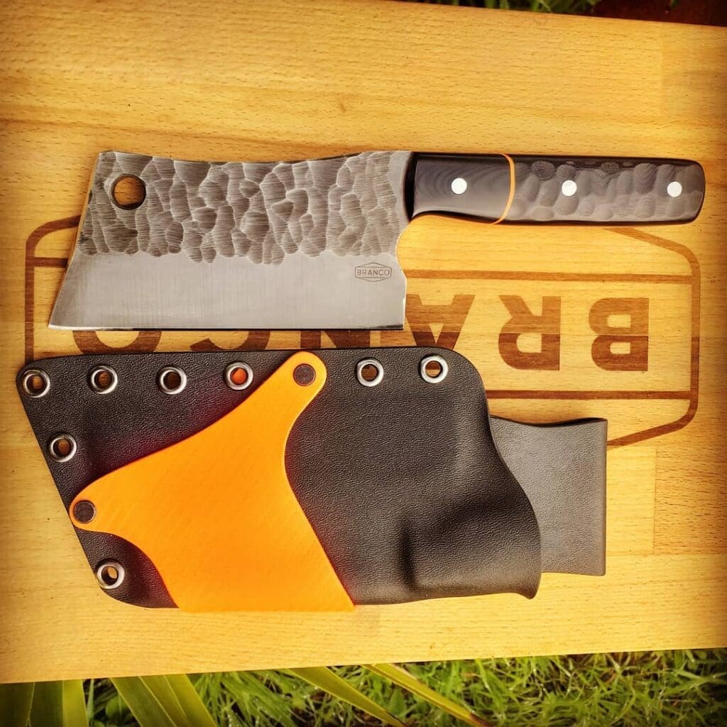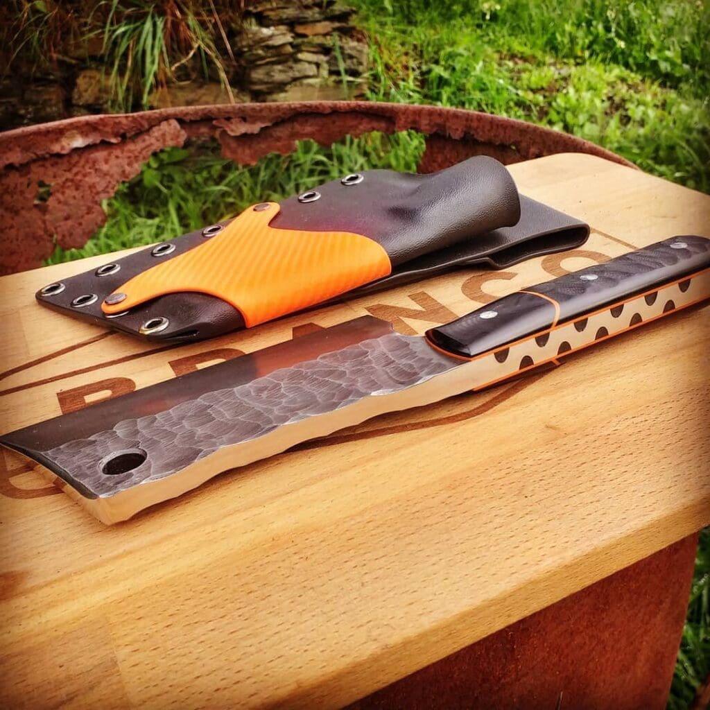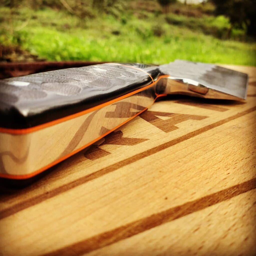 I love the rock pattern on the handle and blade. That mixed with the black and orange colours makes this a truly Badass Chopper. It now has a new, very happy owner who uses it daily in their home kitchen.