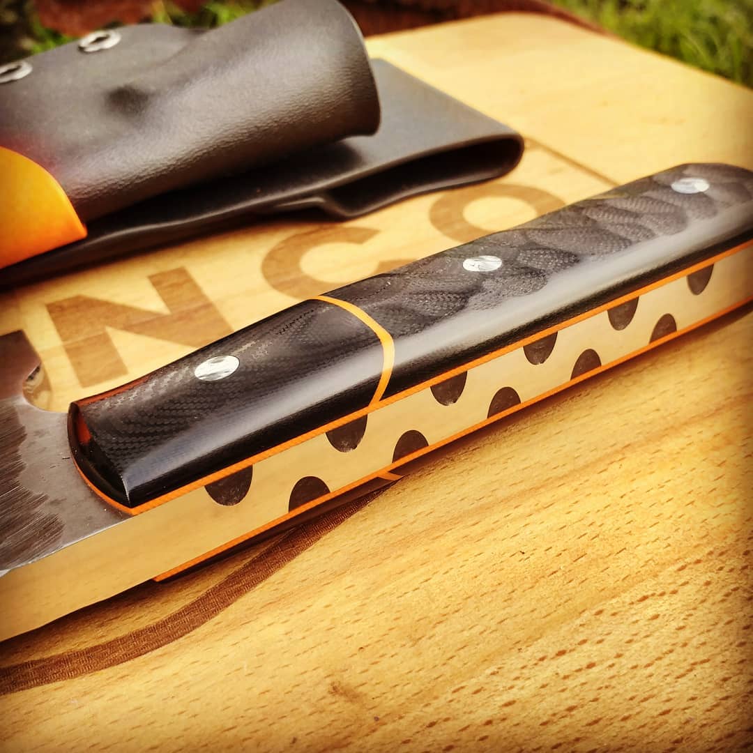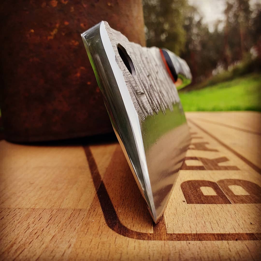I love the rock pattern on the handle and blade. That mixed with the black and orange colours makes this a truly Badass Chopper. It now has a new, very happy owner who uses it daily in their home kitchen.