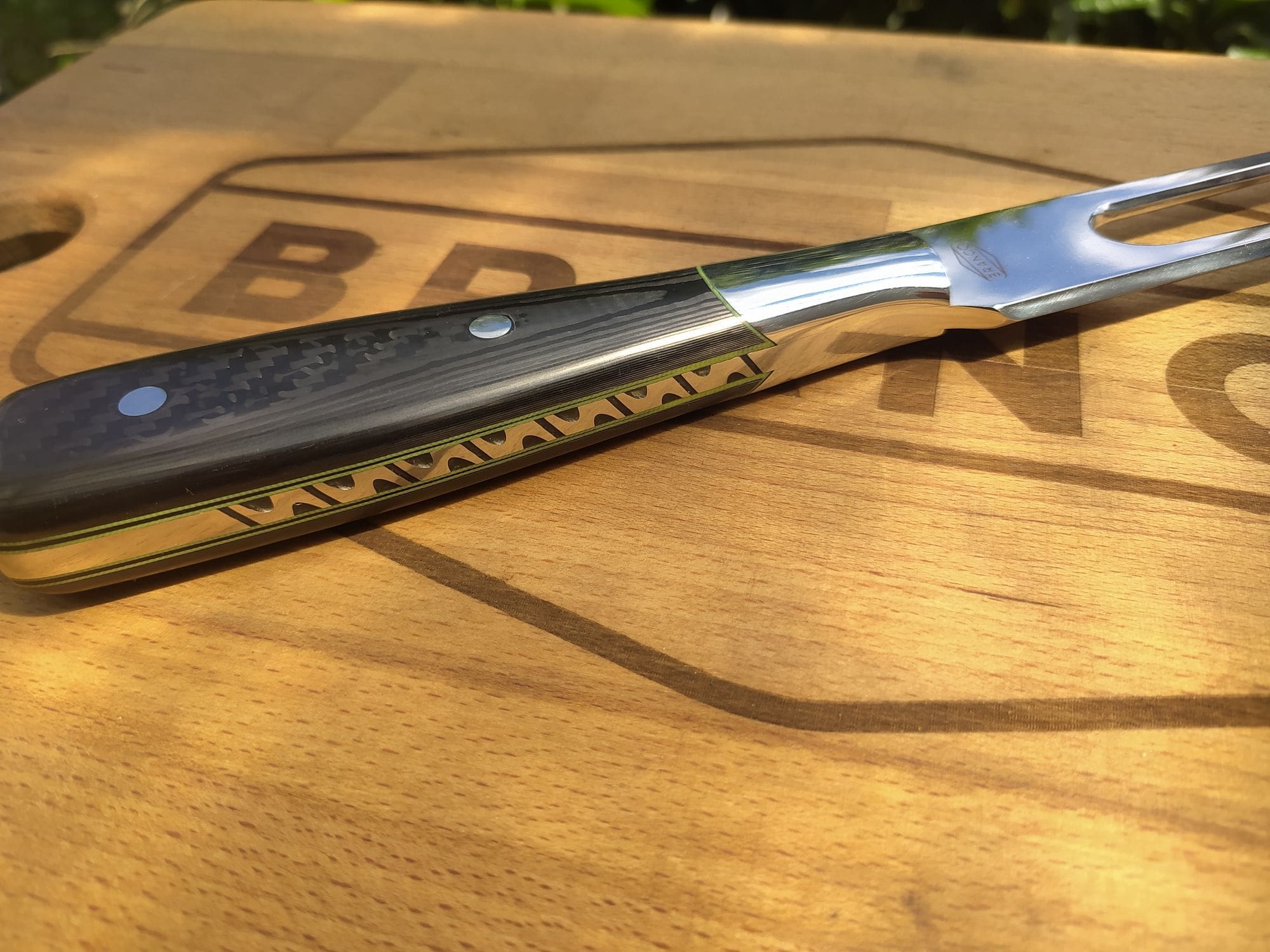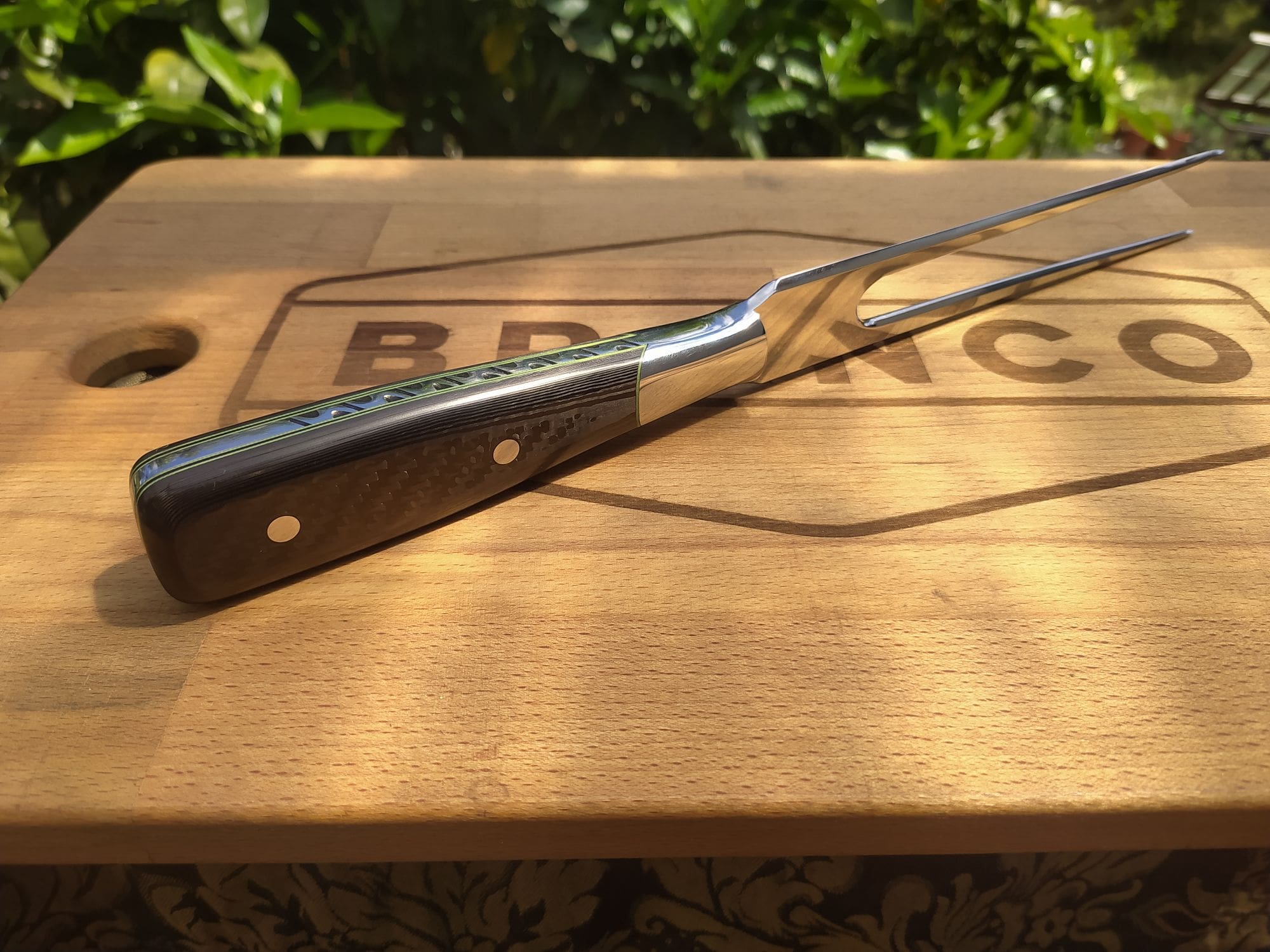 Made to match “The Original” my first ever Kitchen knife. Now this is my first ever Carving Fork. I loved making both of these knives and they look great together!