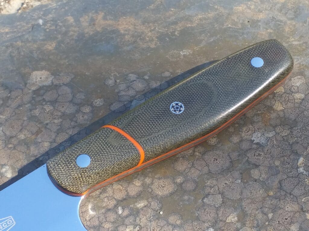 Olive Green canvas micarta handle material.