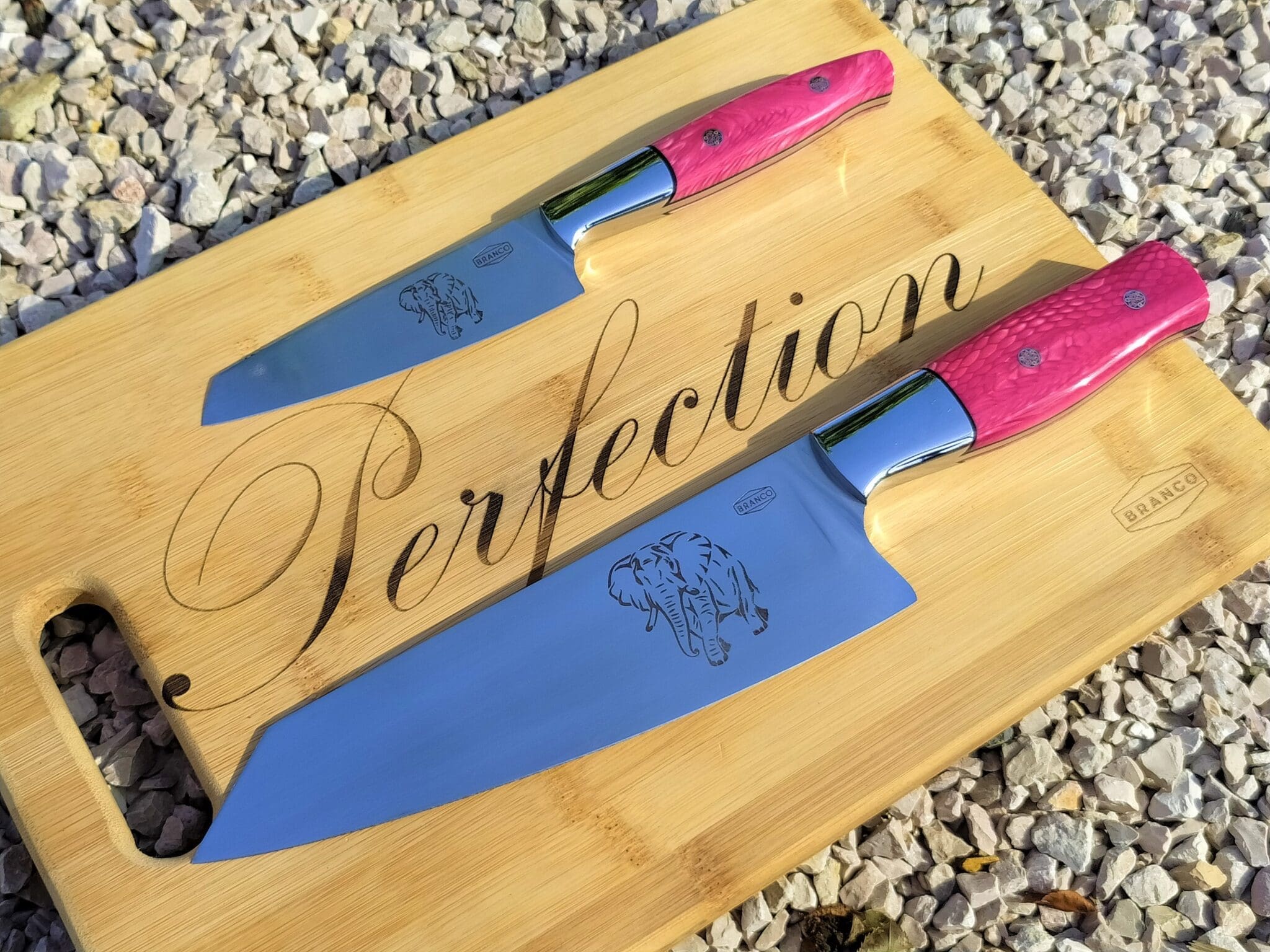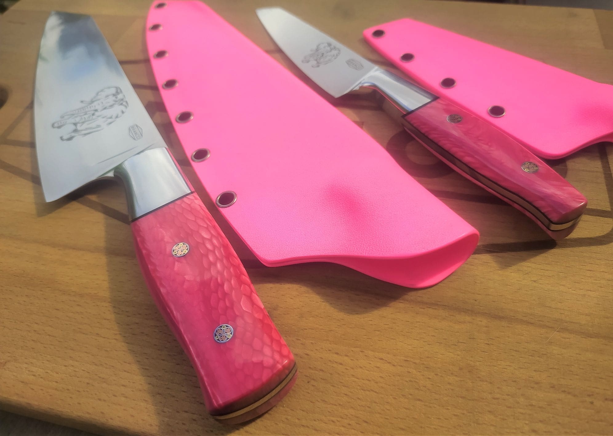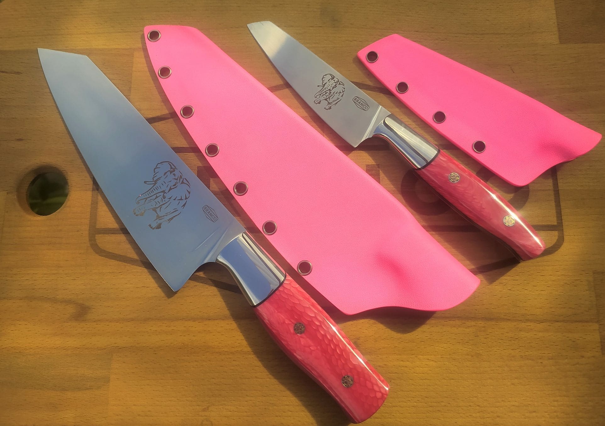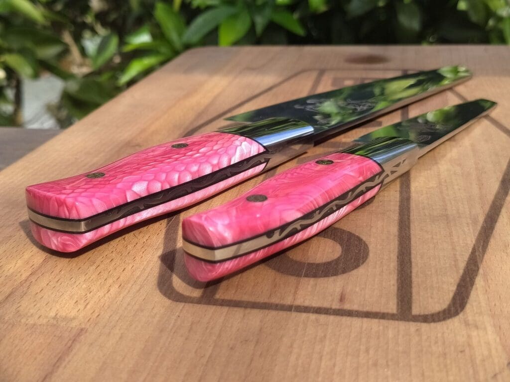 Beautiful matching pair. A full sized Chef’s knife with matching Paring Knife.