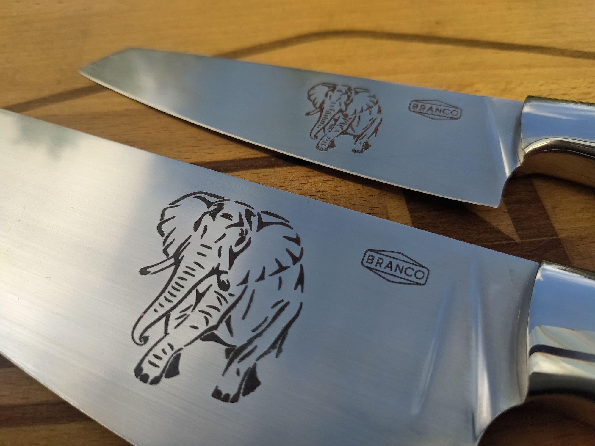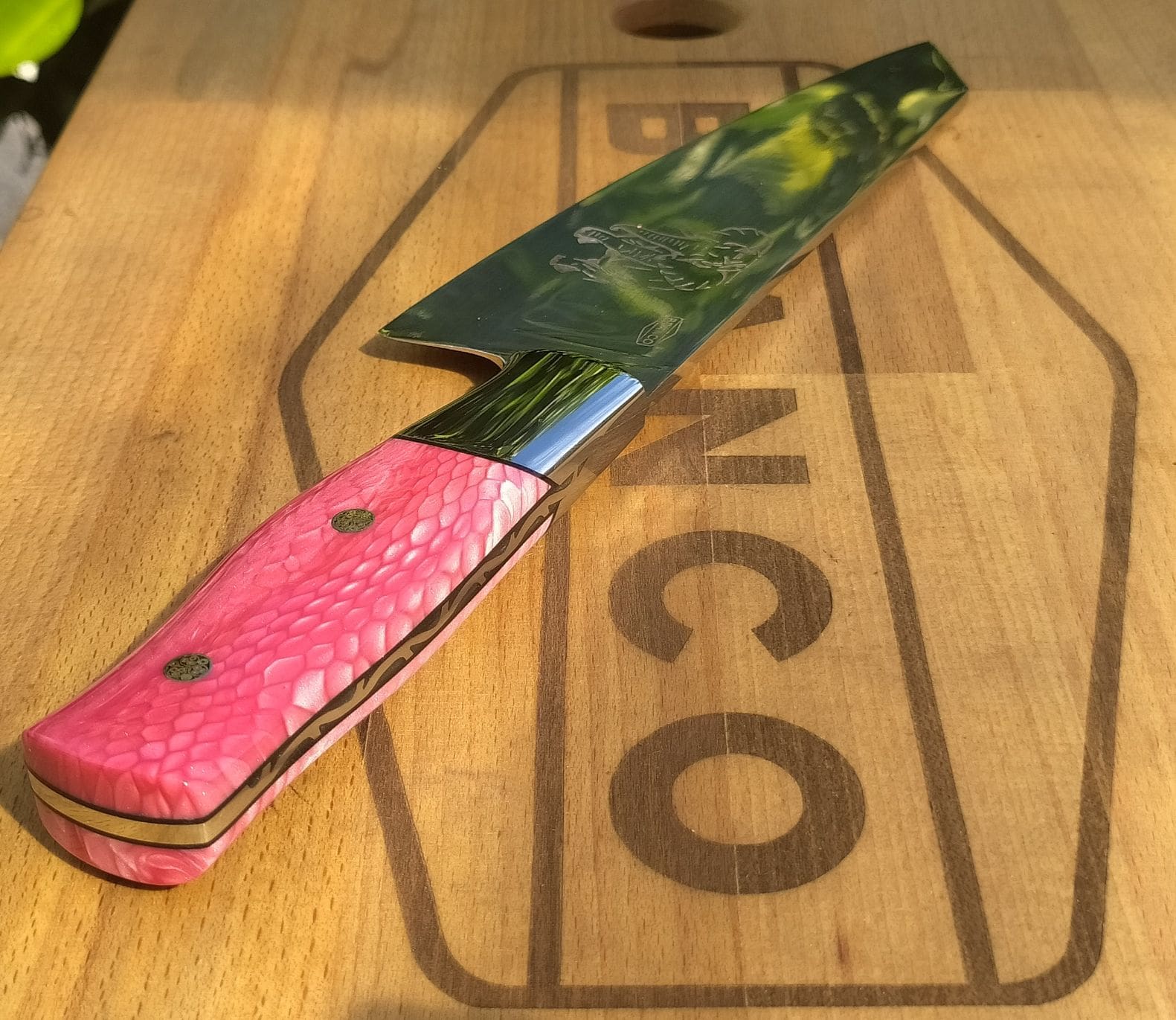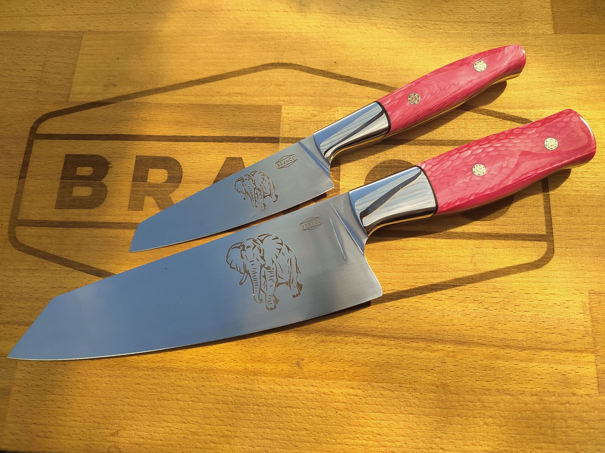 Beautiful matching pair. A full sized Chef’s knife with matching Paring Knife.